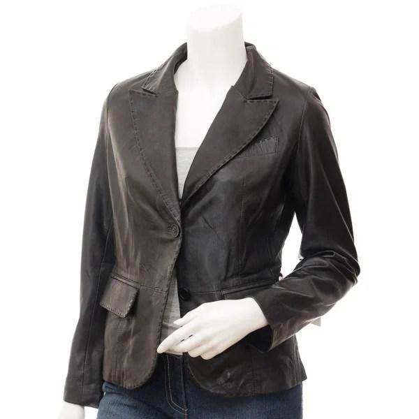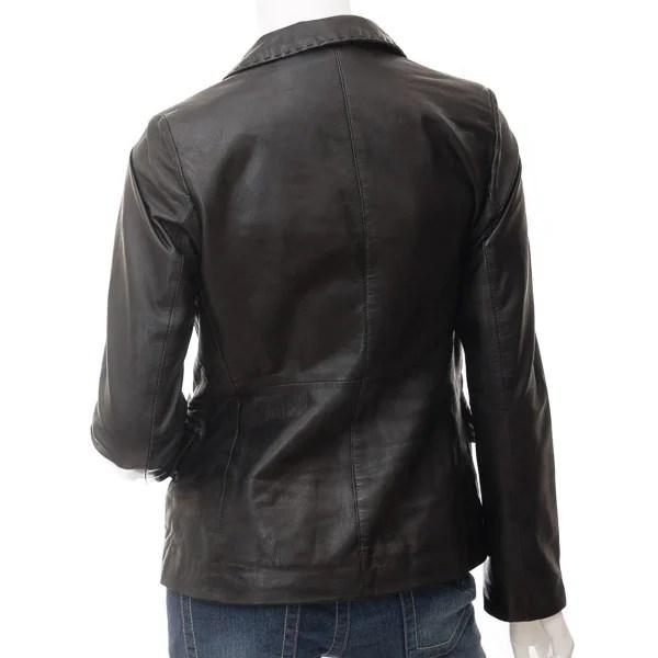 A delightful black leather blazer in a casual style.